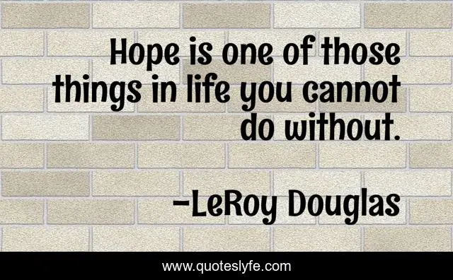 This page presents the quote "Hope is one of those things in life you cannot do without.". Author of this quote is LeRoy Douglas. .