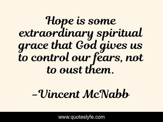 This page presents the quote "Hope is some extraordinary spiritual grace that God gives us to control our fears, not to oust them.". Author of this quote is Vincent McNabb. .