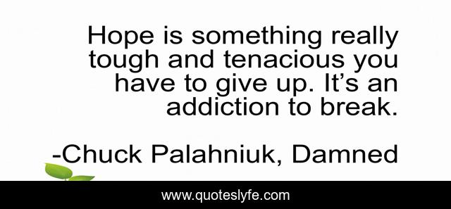 This page presents the quote "Hope is something really tough and tenacious you have to give up. It’s an addiction to break.". Author of this quote is Chuck Palahniuk, Damned. This quote is about damned, fiction,.