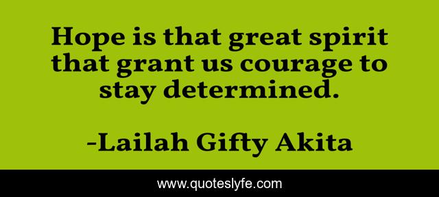 This page presents the quote "Hope is that great spirit that grant us courage to stay determined.". Author of this quote is Lailah Gifty Akita. This quote is about courage, determined, hope,.