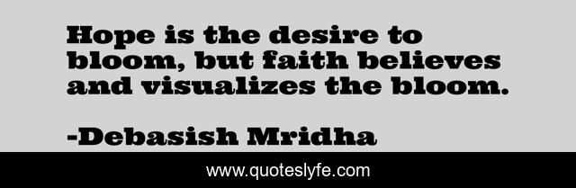 This page presents the quote "Hope is the desire to bloom, but faith believes and visualizes the bloom.". Author of this quote is Debasish Mridha. This quote is about life, love, knowledge, inspirational, intelligence, philosophy, wisdom, quotes, affection,.