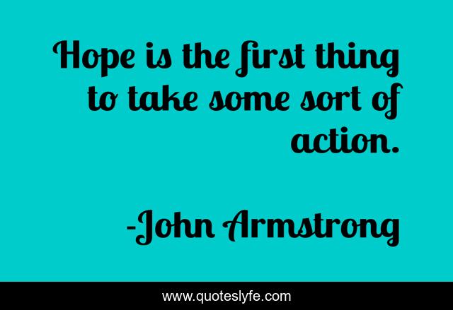 This page presents the quote "Hope is the first thing to take some sort of action.". Author of this quote is John Armstrong. .