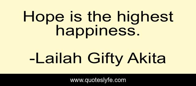 "Lailah Gifty Akita Quotes." Quoteslyfe.com, 2025. Mon. 08 Dec. 2025. <https://www.quoteslyfe.com/quote/Hope-is-the-highest-happiness-17341>.