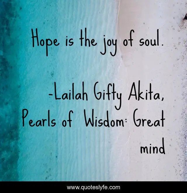 "Lailah Gifty Akita, Pearls of Wisdom: Great mind Quotes." Quoteslyfe.com, 2025. Sat. 06 Dec. 2025. <https://www.quoteslyfe.com/quote/Hope-is-the-joy-of-soul-97312>.