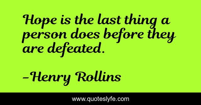 This page presents the quote "Hope is the last thing a person does before they are defeated.". Author of this quote is Henry Rollins. This quote is about pessimistic, hope, defeat,.