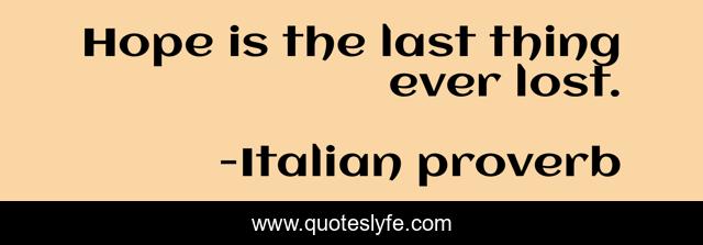"Italian proverb Quotes." Quoteslyfe.com, 2025. Mon. 08 Dec. 2025. <https://www.quoteslyfe.com/quote/Hope-is-the-last-thing-ever-lost-268497>.