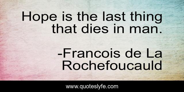 This page presents the quote "Hope is the last thing that dies in man.". Author of this quote is Francois de La Rochefoucauld. .