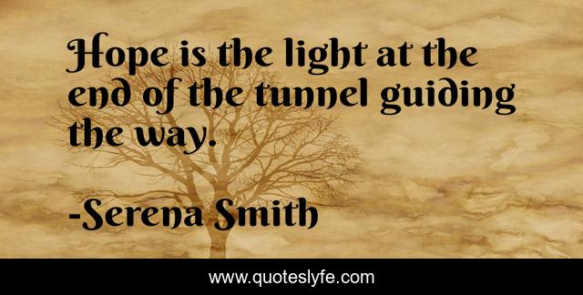 This page presents the quote "Hope is the light at the end of the tunnel guiding the way.". Author of this quote is Serena Smith. This quote is about light, hop,.