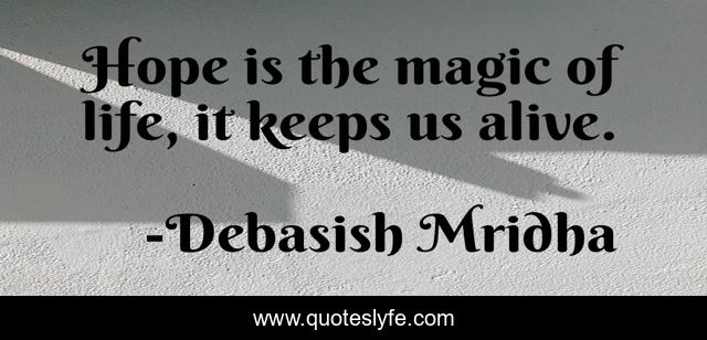This page presents the quote "Hope is the magic of life, it keeps us alive.". Author of this quote is Debasish Mridha. This quote is about life, love, knowledge, inspirational, intelligence, philosophy, wisdom, affection, truth,.