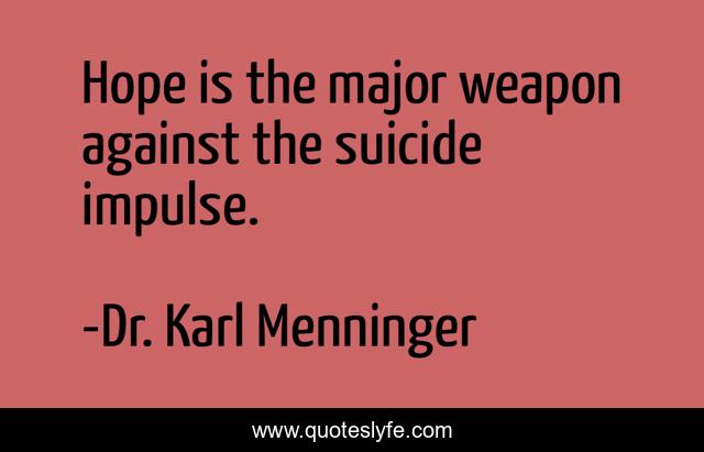 This page presents the quote "Hope is the major weapon against the suicide impulse.". Author of this quote is Dr. Karl Menninger. .