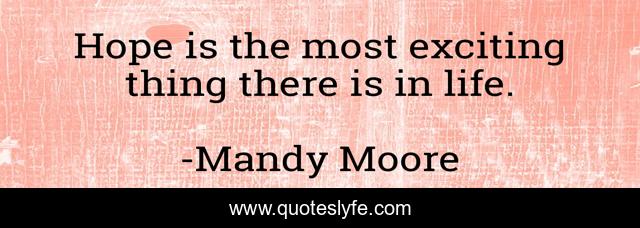 This page presents the quote "Hope is the most exciting thing there is in life.". Author of this quote is Mandy Moore. This quote is about most, life, exciting,.