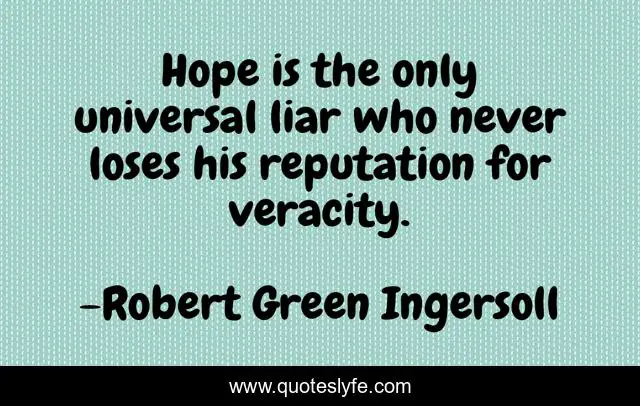 "Robert Green Ingersoll Quotes." Quoteslyfe.com, 2025. Sat. 06 Dec. 2025. <https://www.quoteslyfe.com/quote/Hope-is-the-only-universal-liar-who-282880>.