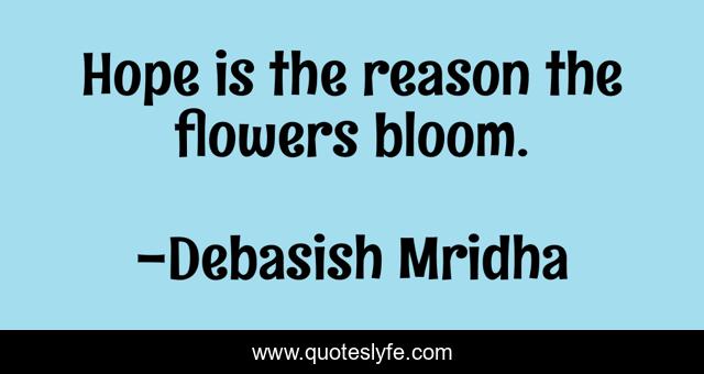 This page presents the quote "Hope is the reason the flowers bloom.". Author of this quote is Debasish Mridha. This quote is about life, love, knowledge, inspirational, intelligence, philosophy, wisdom, quotes, affection,.