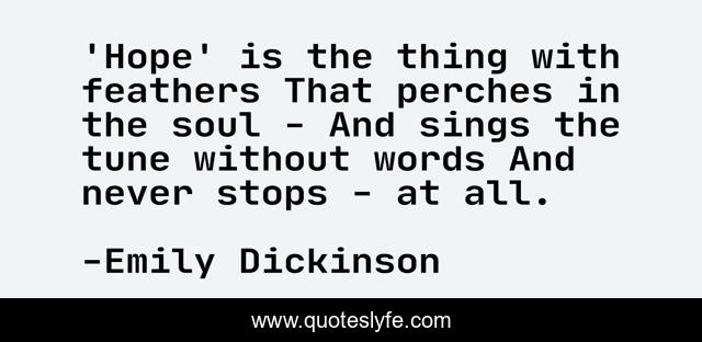"Emily Dickinson Quotes." Quoteslyfe.com, 2025. Fri. 05 Dec. 2025. <https://www.quoteslyfe.com/quote/Hope-is-the-thing-with-feathers-That-268469>.
