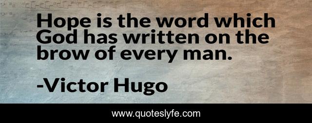 This page presents the quote "Hope is the word which God has written on the brow of every man.". Author of this quote is Victor Hugo. .