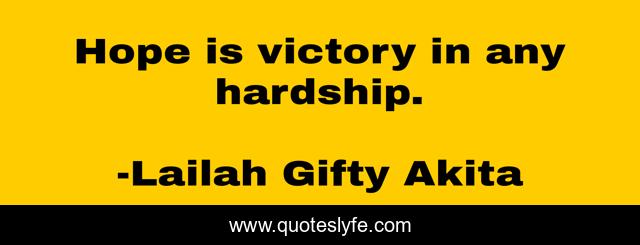 "Lailah Gifty Akita Quotes." Quoteslyfe.com, 2025. Sat. 06 Dec. 2025. <https://www.quoteslyfe.com/quote/Hope-is-victory-in-any-hardship-19765>.