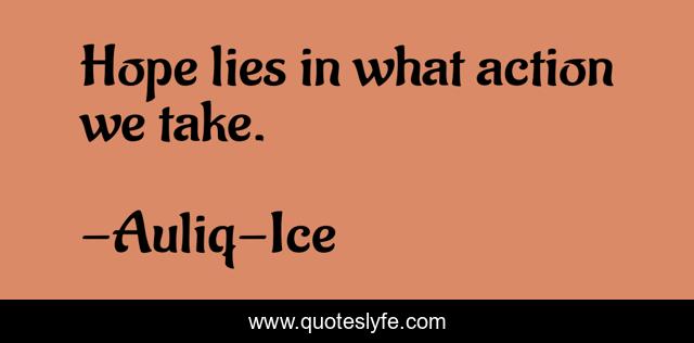 "Auliq-Ice Quotes." Quoteslyfe.com, 2025. Sun. 07 Dec. 2025. <https://www.quoteslyfe.com/quote/Hope-lies-in-what-action-we-take-17156>.