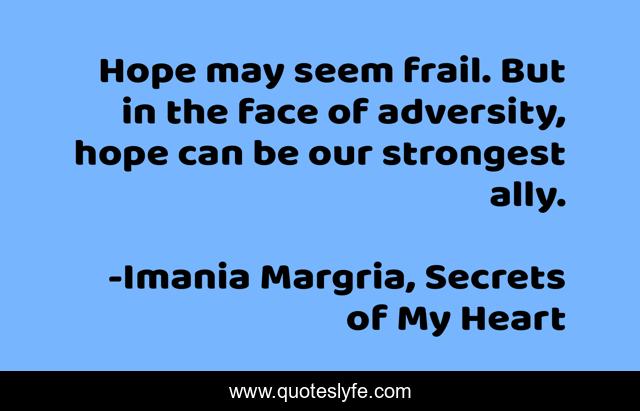 "Imania Margria, Secrets of My Heart Quotes." Quoteslyfe.com, 2025. Mon. 08 Dec. 2025. <https://www.quoteslyfe.com/quote/Hope-may-seem-frail-But-in-the-47853>.