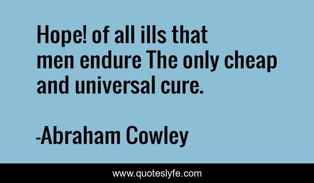 This page presents the quote "Hope! of all ills that men endure The only cheap and universal cure.". Author of this quote is Abraham Cowley. .