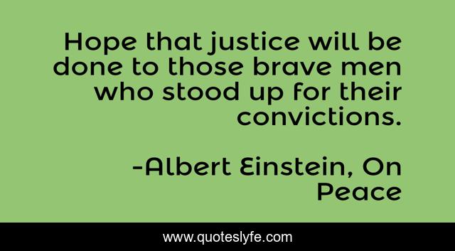 This page presents the quote "Hope that justice will be done to those brave men who stood up for their convictions.". Author of this quote is Albert Einstein, On Peace. This quote is about justice, society, peace,.
