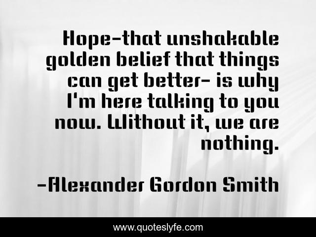 "Alexander Gordon Smith Quotes." Quoteslyfe.com, 2025. Sat. 06 Dec. 2025. <https://www.quoteslyfe.com/quote/Hope-that-unshakable-golden-belief-that-things-19630>.