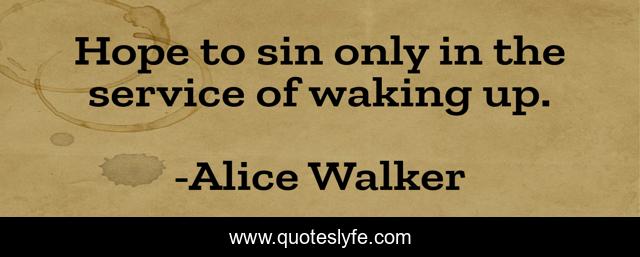 This page presents the quote "Hope to sin only in the service of waking up.". Author of this quote is Alice Walker. This quote is about life, sin, inspiration,.