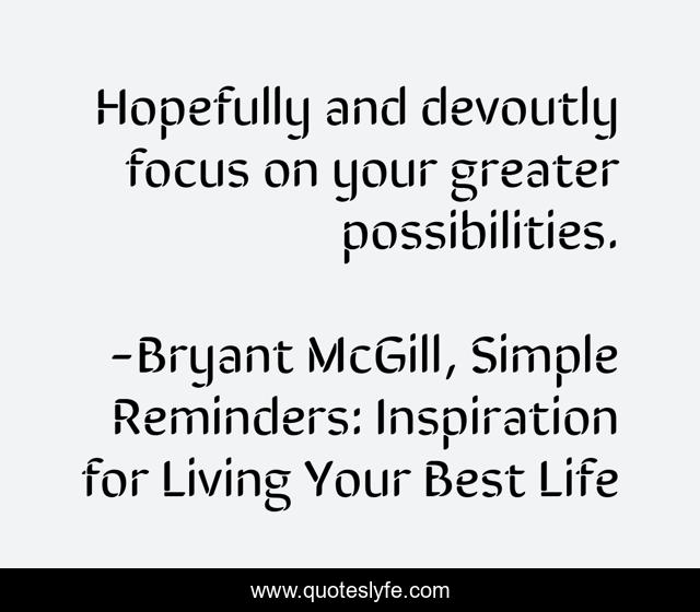 This page presents the quote "Hopefully and devoutly focus on your greater possibilities.". Author of this quote is Bryant McGill, Simple Reminders: Inspiration for Living Your Best Life. This quote is about possibilities, hopefulness, focus, greatness,.