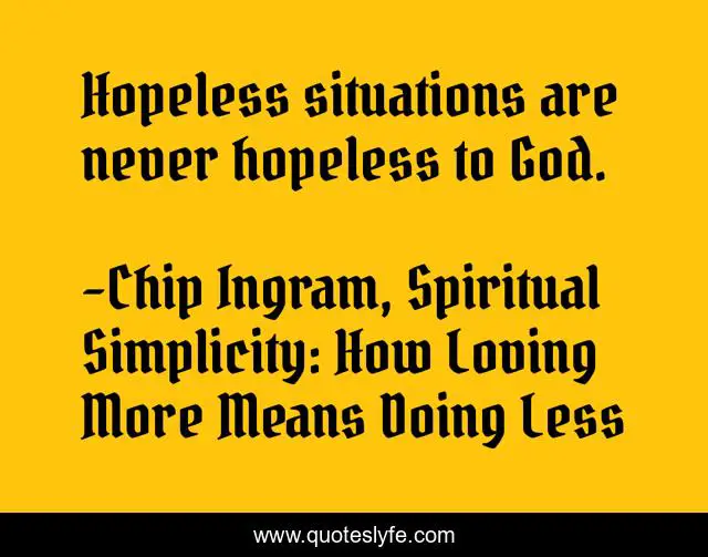 "Chip Ingram, Spiritual Simplicity: How Loving More Means Doing Less Quotes." Quoteslyfe.com, 2025. Mon. 08 Dec. 2025. <https://www.quoteslyfe.com/quote/Hopeless-situations-are-never-hopeless-to-God-146891>.