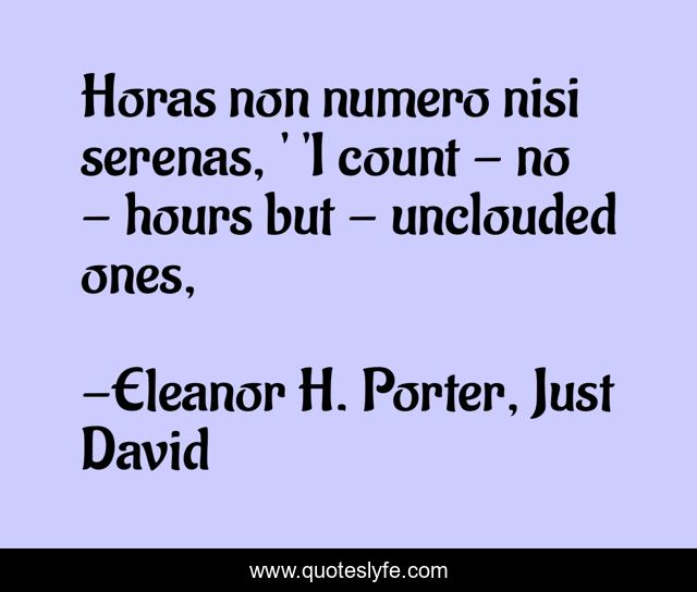 "Eleanor H. Porter, Just David Quotes." Quoteslyfe.com, 2025. Fri. 05 Dec. 2025. <https://www.quoteslyfe.com/quote/Horas-non-numero-nisi-serenas-I-count-181003>.