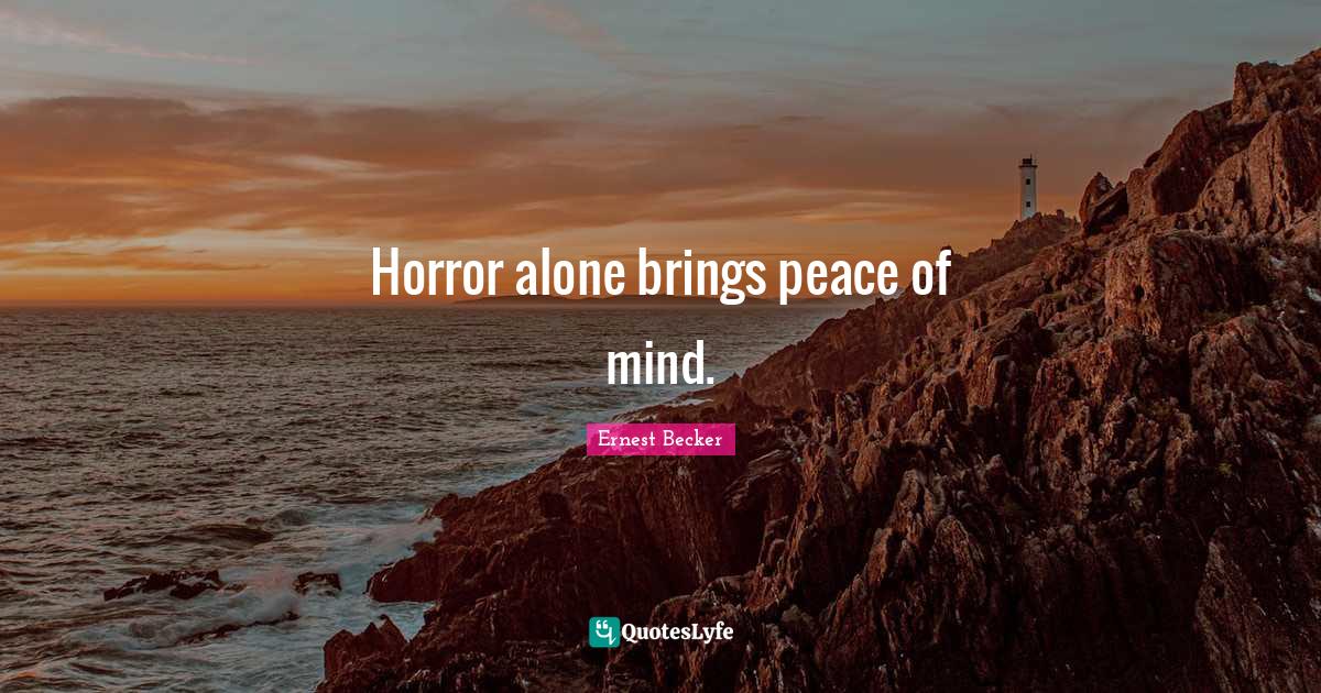 This page presents the quote "Horror alone brings peace of mind.". Author of this quote is Ernest Becker. This quote is about horror, peace of mind, mind,.