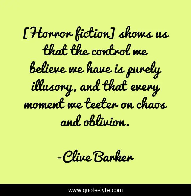 "Clive Barker Quotes." Quoteslyfe.com, 2025. Sat. 06 Dec. 2025. <https://www.quoteslyfe.com/quote/Horror-fiction-shows-us-that-the-control-9065>.