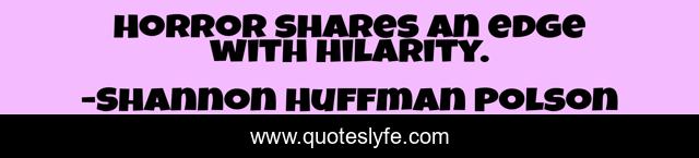 "Shannon Huffman Polson Quotes." Quoteslyfe.com, 2025. Fri. 05 Dec. 2025. <https://www.quoteslyfe.com/quote/Horror-shares-an-edge-with-hilarity-122766>.