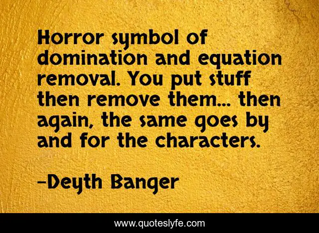 This page presents the quote "Horror symbol of domination and equation removal. You put stuff then remove them… then again, the same goes by and for the characters.". Author of this quote is Deyth Banger. This quote is about symbol, equaion, horror, them, remove,.