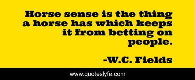 This page presents the quote "Horse sense is the thing a horse has which keeps it from betting on people.". Author of this quote is W.C. Fields. This quote is about horses, betting, humor, common-sense,.