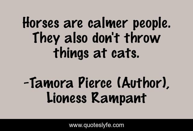 "Tamora Pierce (Author), Lioness Rampant Quotes." Quoteslyfe.com, 2025. Mon. 08 Dec. 2025. <https://www.quoteslyfe.com/quote/Horses-are-calmer-people-They-also-don-222746>.