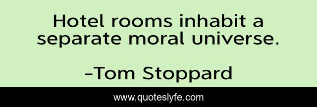 "Tom Stoppard Quotes." Quoteslyfe.com, 2025. Mon. 08 Dec. 2025. <https://www.quoteslyfe.com/quote/Hotel-rooms-inhabit-a-separate-moral-universe-28546>.
