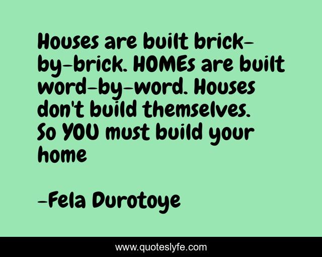 "Fela Durotoye Quotes." Quoteslyfe.com, 2025. Fri. 05 Dec. 2025. <https://www.quoteslyfe.com/quote/Houses-are-built-brick-by-brick-HOMEs-161206>.