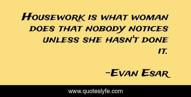 "Evan Esar Quotes." Quoteslyfe.com, 2025. Sat. 06 Dec. 2025. <https://www.quoteslyfe.com/quote/Housework-is-what-woman-does-that-nobody-278826>.