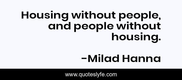 "Milad Hanna Quotes." Quoteslyfe.com, 2025. Sat. 06 Dec. 2025. <https://www.quoteslyfe.com/quote/Housing-without-people-and-people-without-housing-51956>.