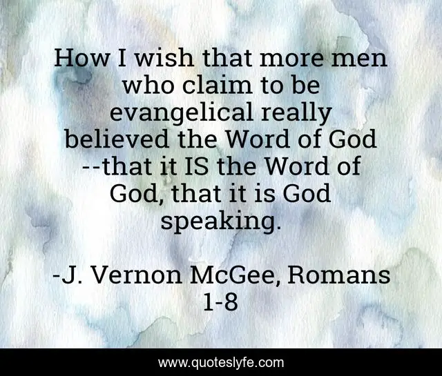 This page presents the quote "How I wish that more men who claim to be evangelical really believed the Word of God--that it IS the Word of God, that it is God speaking.". Author of this quote is J. Vernon McGee, Romans 1-8. .