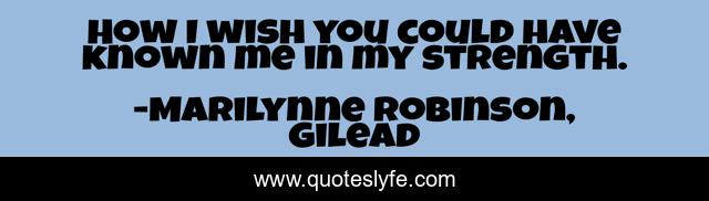 This page presents the quote "How I wish you could have known me in my strength.". Author of this quote is Marilynne Robinson, Gilead. This quote is about kind, brave, love, regret, beauty, wish, life, grace, courage,.