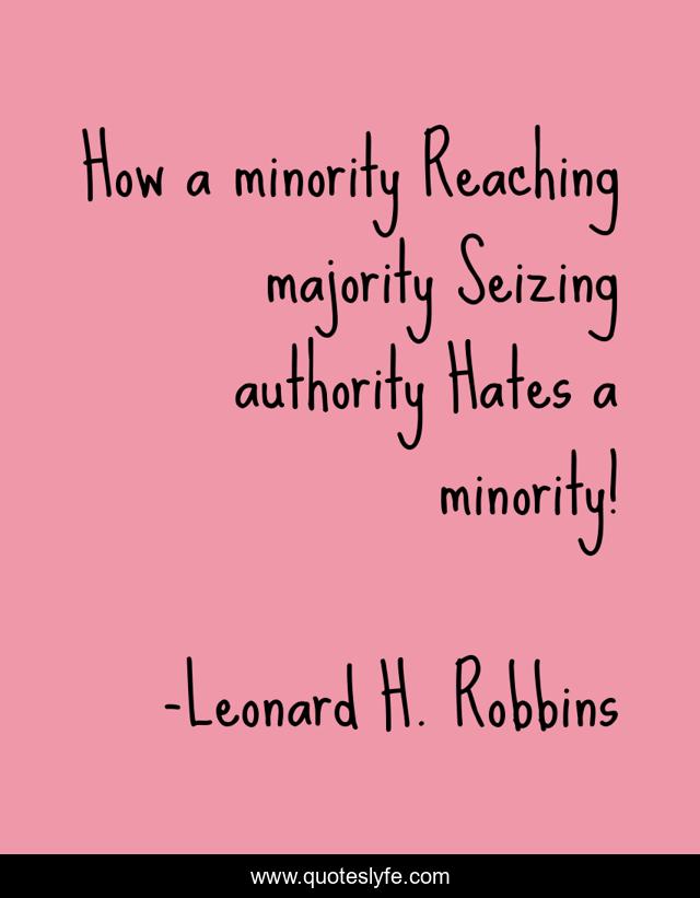 "Leonard H. Robbins Quotes." Quoteslyfe.com, 2025. Sat. 06 Dec. 2025. <https://www.quoteslyfe.com/quote/How-a-minority-Reaching-majority-Seizing-authority-270762>.