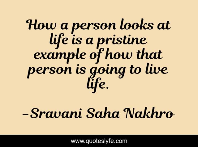 This page presents the quote "How a person looks at life is a pristine example of how that person is going to live life.". Author of this quote is Sravani Saha Nakhro. .