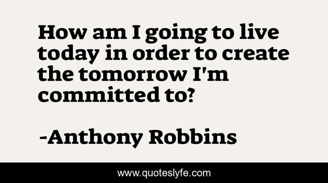 This page presents the quote "How am I going to live today in order to create the tomorrow I'm committed to?". Author of this quote is Anthony Robbins. This quote is about positive, confidence, motivational, optimistic,.