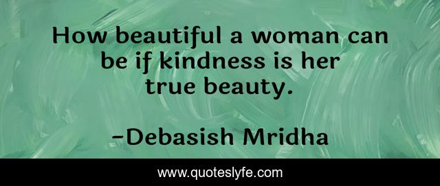 This page presents the quote "How beautiful a woman can be if kindness is her true beauty.". Author of this quote is Debasish Mridha. This quote is about miraboli, beautiful-woman, oscar-wilde, philosophy, debasish-mridha, true-beauty, quotes, debasish-mridha-md, inspirational,.