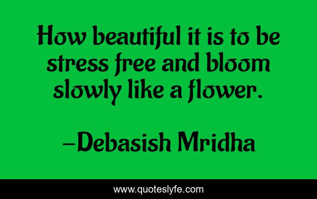 This page presents the quote "How beautiful it is to be stress free and bloom slowly like a flower.". Author of this quote is Debasish Mridha. This quote is about life, love, knowledge, inspirational, intelligence, philosophy, wisdom, quotes, affection,.