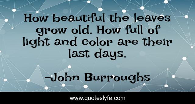 This page presents the quote "How beautiful the leaves grow old. How full of light and color are their last days.". Author of this quote is John Burroughs. This quote is about beautiful, light, color,.