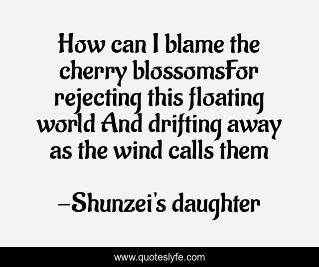 This page presents the quote "How can I blame the cherry blossomsFor rejecting this floating world And drifting away as the wind calls them". Author of this quote is Shunzei's daughter. .