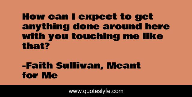 This page presents the quote "How can I expect to get anything done around here with you touching me like that?". Author of this quote is Faith Sullivan, Meant for Me. This quote is about new-adult, trilogy, contemporary-romance, inspirational-romance,.