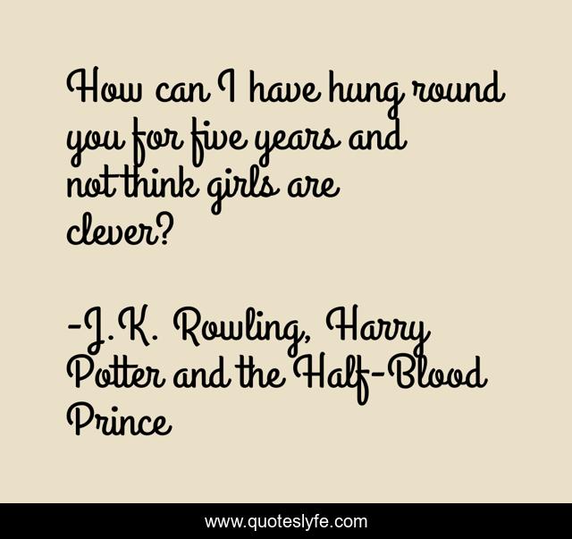 This page presents the quote "How can I have hung round you for five years and not think girls are clever?". Author of this quote is J.K. Rowling, Harry Potter and the Half-Blood Prince. This quote is about jk-rowling, page-538, clever, harry-potter, the-half-blood-prince, girls, chapter-25, hermione-granger,.